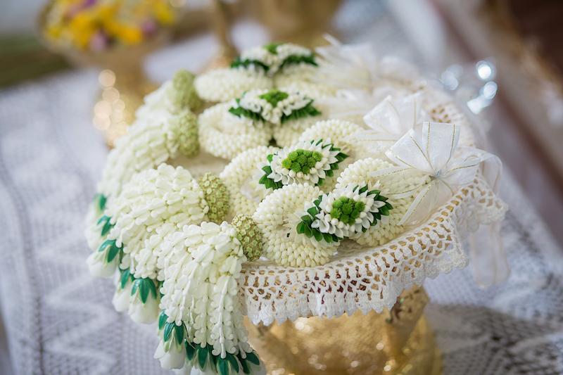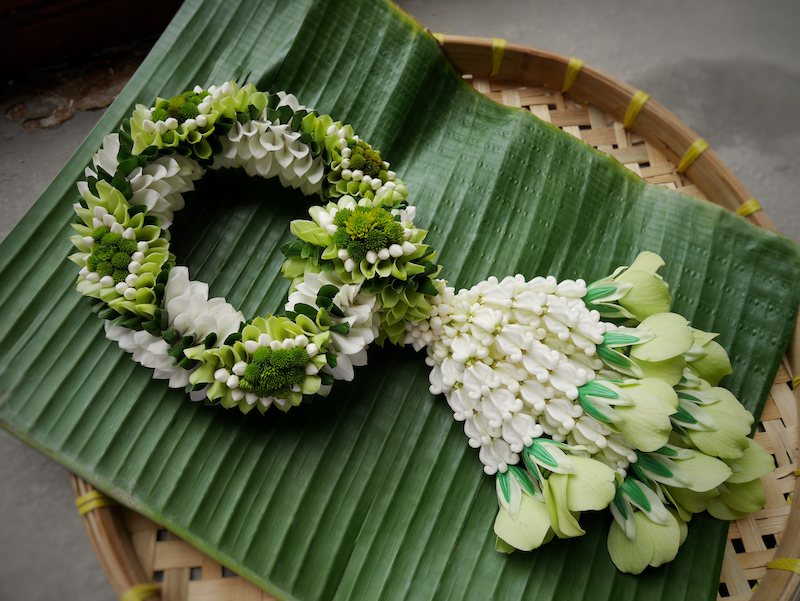 ดอกไม้ที่ถูกเลือกสรรอย่างพิถีพิถัน ร้อยเรียงกันเป็นมาลัยที่งดงาม ถือเป็นงานศิลปะที่เต็มไปด้วยจิตนาการและความหมายลึกซึ้ง