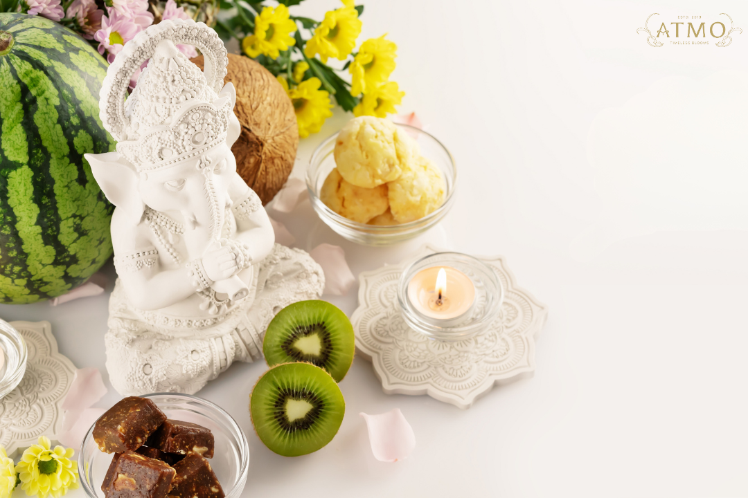 3. อาหารและผลไม้สำหรับถวายองค์พระพิฆเนศ
