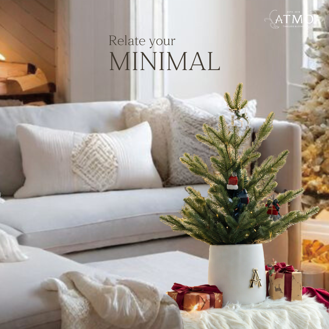 ห้องสไตล์มินิมอลที่เน้นความเรียบง่ายและความสมดุล ต้นคริสต์มาสขนาดเล็กจาก ATMO ในแจกันสีขาวสะอาดตาเป็นตัวเลือกที่สมบูรณ์แบบ ประดับด้วยของตกแต่งเล็กน้อยในโทนสีอ่อน เช่น แดง ขาว และเขียว เพื่อเพิ่มความสดใสให้พื้นที่โดยไม่ทำลายความสงบของห้อง