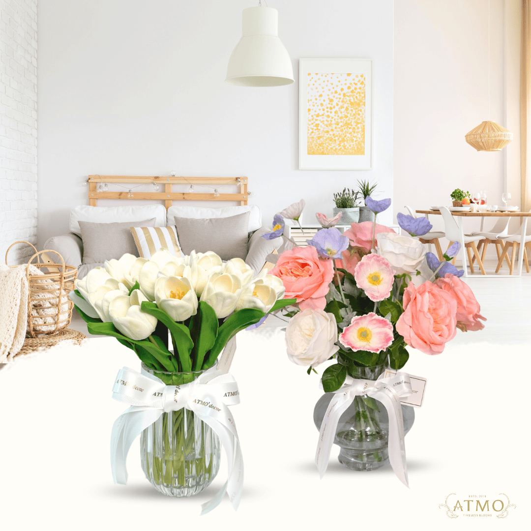 ด้วยความหลากหลายของรูปแบบ สีสัน และดีไซน์ ดอกไม้ประดิษฐ์สามารถนำไปจัดวางในพื้นที่ต่างๆ ของบ้านได้อย่างลงตัว ไม่ว่าจะเป็นมุมรับแขก โต๊ะอาหาร หรือหัวเตียง เพิ่มบรรยากาศให้บ้านดูอบอุ่น น่าพักผ่อน