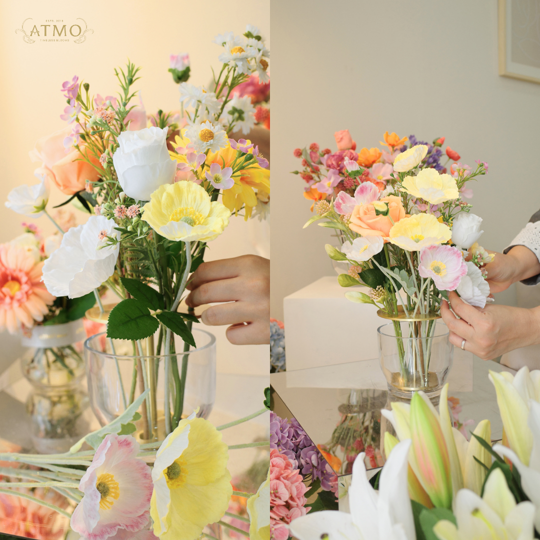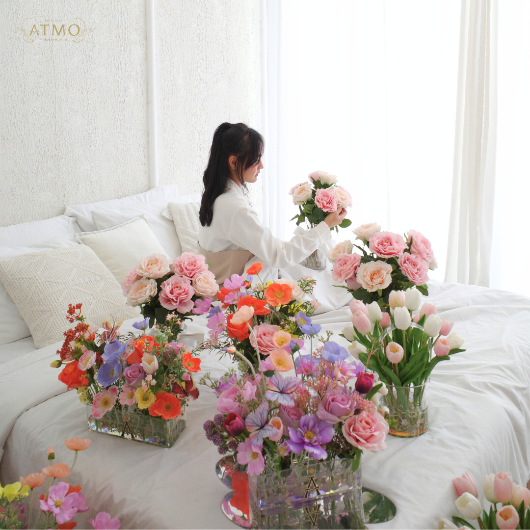 การจัดแจกันคือการคุยกับหัวใจตัวเองน้ำชอบการจัดดอกไม้ค่ะ ไม่ใช่เพราะมันสวยเท่านั้น แต่เพราะตอนที่เราค่อย ๆ เลือกแต่ละดอกหมุนให้เข้าทรงเติมใบไม้เล็ก ๆ แซมไปในช่องว่าง มันเหมือนเรากำลังใส่ความรู้สึกบางอย่างในใจตัวเองกลับเข้าที่ ดอกไม้ประดิษฐ์ที่น้ำหลงรักเลยก็เพราะความมีเสน่ห์ตรงที่เราควบคุมได้ทุกอย่างจะจัดให้ฟูเต็มแจกันไปเลย หรือจัดแบบเว้นที่ว่างไว้บ้าง ให้ลมหายใจของเราได้พักมันไม่มีถูกผิดเลยค่ะ มีแค่ความรู้สึกว่า “แบบนี้คือฉันในวันนี้”