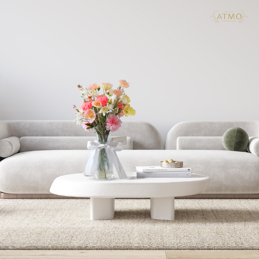 ที่ Atmo Decor เรามีแจกันพาสเทลหลายรูปทรง ทั้งแบบเรียวสูงและทรงกลมและดอกไม้หลากหลายแบบที่เต็มไปด้วยเสน่ห์ทำให้มุมบ้านดูนุ่มนวลขึ้นทันที