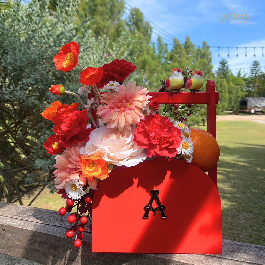 ตรุษจีน : แจกันสีแดง + ดอกโบตั๋นหรือซากุระ