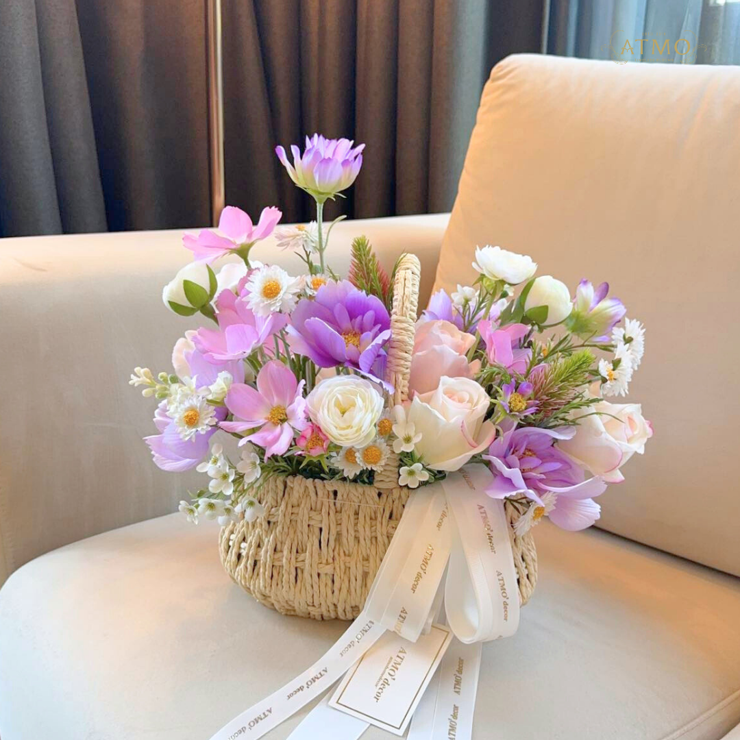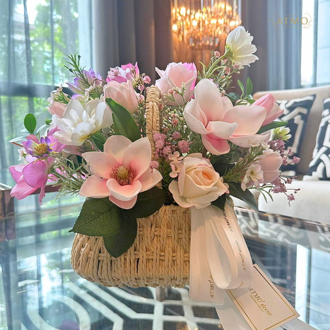 ปีใหม่ : ตะกร้าสาน + ดอกไม้ขาวหรือพาสเทล