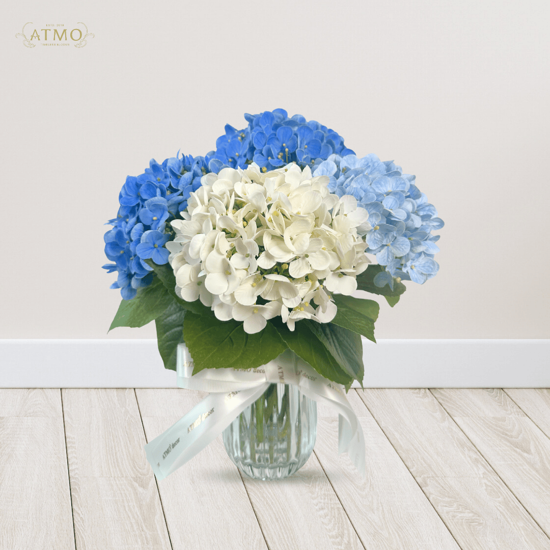 แจกันดอกไฮเดรนเยียสีฟ้า