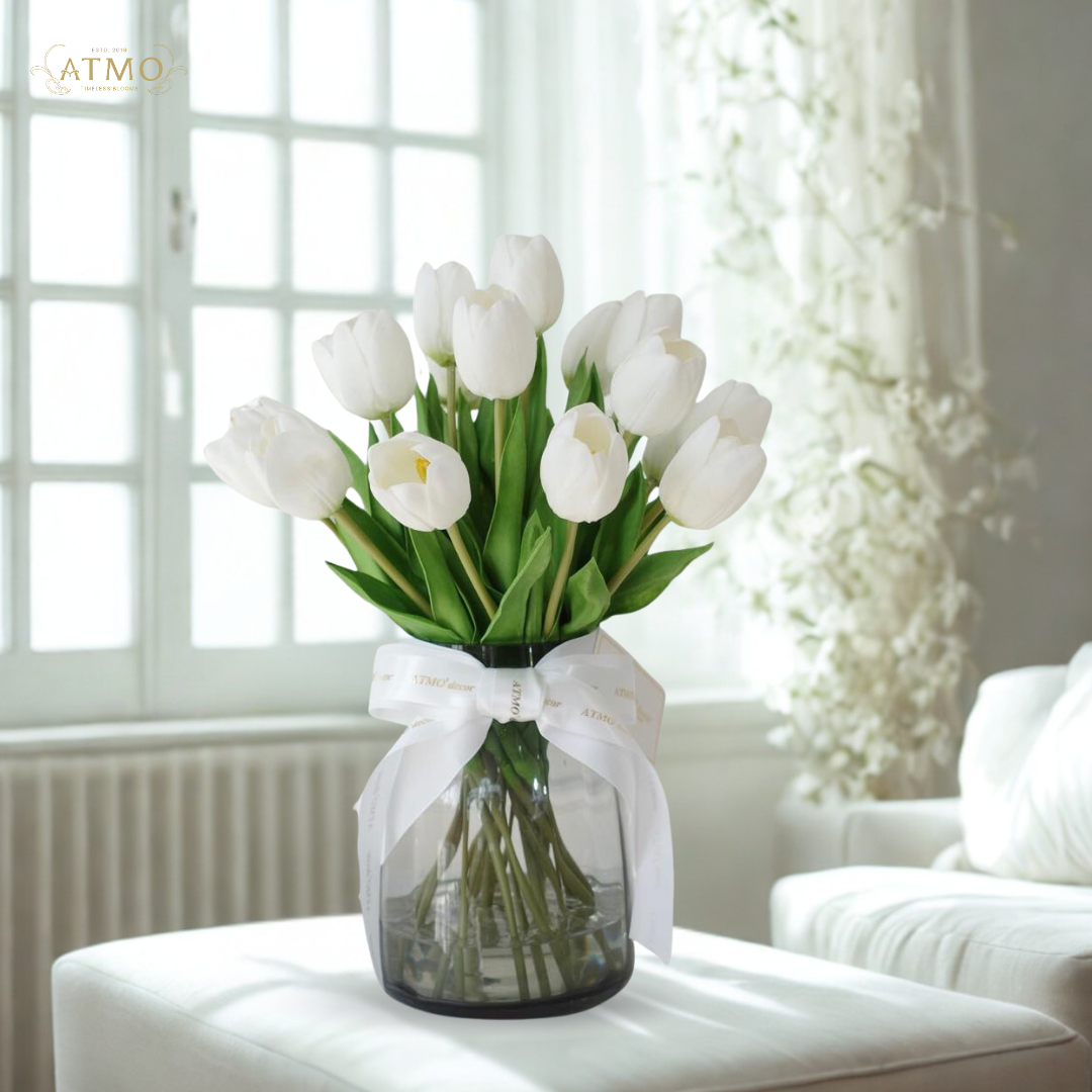 ดอกไม้สีขาวให้ความรู้สึกสะอาด บริสุทธิ์ เหมาะกับวันที่อยากให้บรรยากาศรอบตัวดูเรียบง่ายสบายตาค่ะ ลองกุหลาบขาวหรือดอกทิวลิปในแจกันแก้วใส วางมุมห้องรับแขกหรือโต๊ะทำงานนะคะ รับรองว่าใจจะทำให้รอบตัวดูเรียบง่ายสบายตาขึ้นทันทีเลย