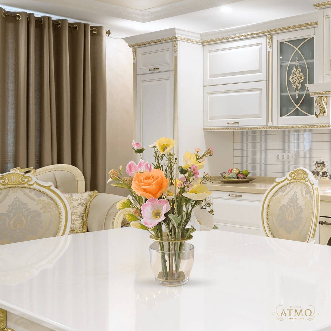 บาโรกในวันนี้ไม่จำเป็นต้อง “จัดเต็ม” เหมือนในอดีตอีกต่อไป แต่สามารถปรับให้ร่วมสมัย ด้วยการเลือกใช้ สีที่สบายตาและของตกแต่งที่มีรายละเอียดพอดี เช่น แจกันดอกไม้ประดิษฐ์ที่ช่วยเสริมบรรยากาศให้บ้านยังคงความหรูหราแบบฝรั่งเศส แต่ก็อบอุ่นและน่าอยู่มากขึ้น นี่แหละคือเสน่ห์ของการแต่งบ้านบาโรกในแบบยุคใหม่ ที่ผสมความอลังการเข้ากับความเรียบง่ายได้อย่างลงตัว
