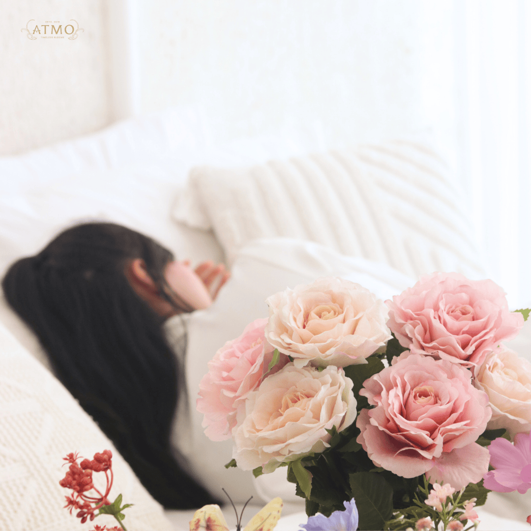 - คุณภาพการนอนที่ดีขึ้น ดอกไม้โทนสีสงบในห้องนอนช่วยปรับบรรยากาศให้น่านอนหลับ ทำให้ร่างกายได้พักผ่อนเต็มที่