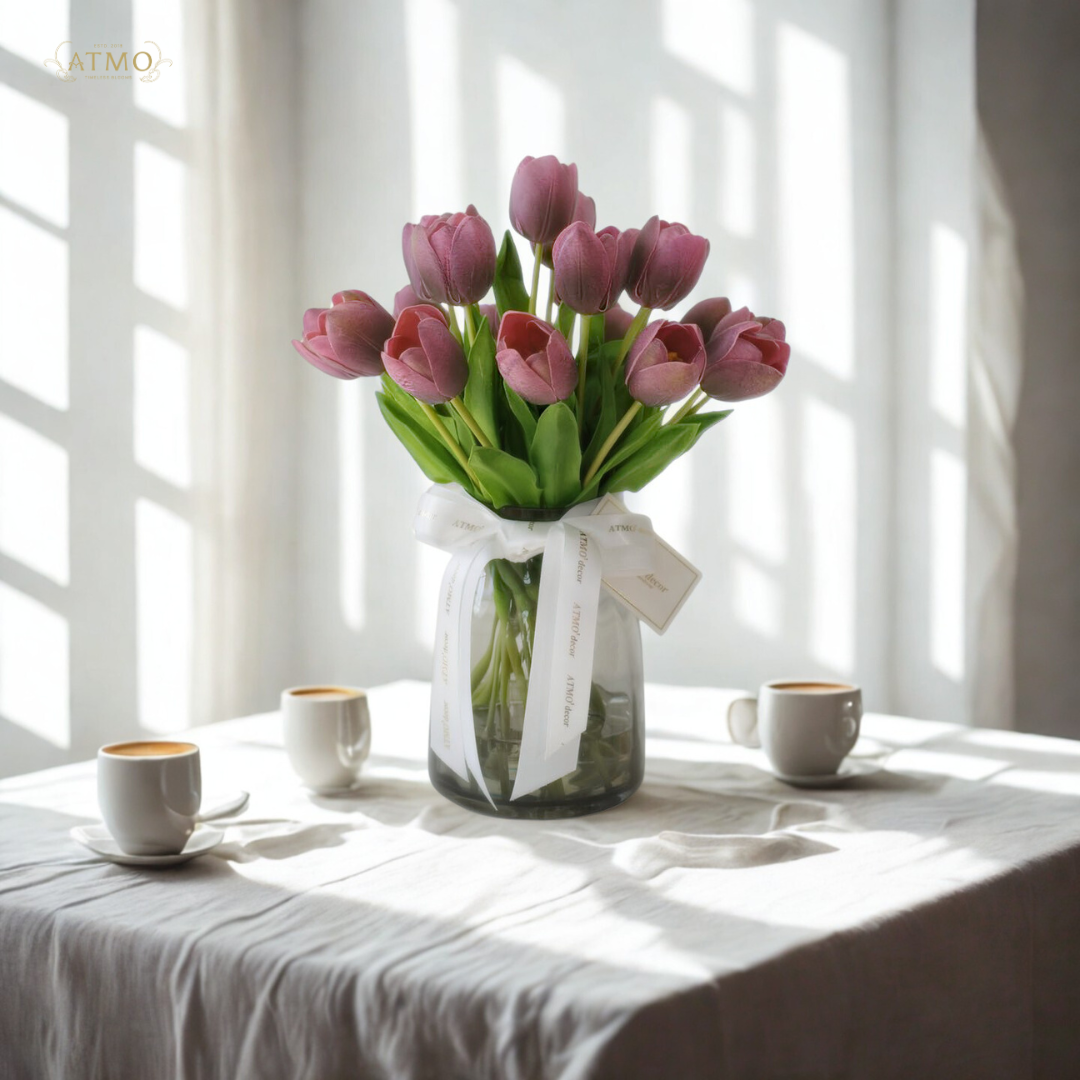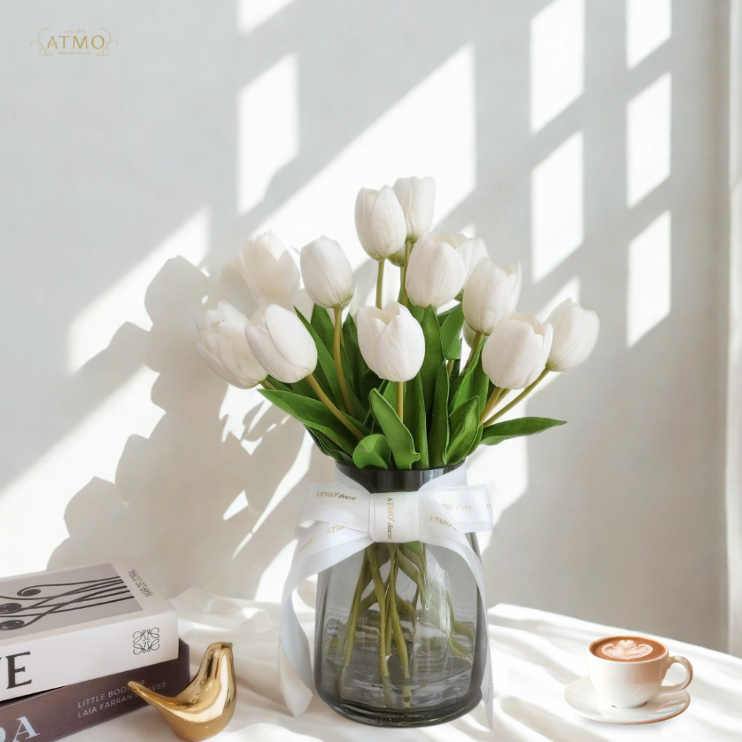 เพราะความสวยของดอกไม้จะโดดเด่นขึ้น เมื่อจับคู่กับแจกันที่ “เข้าใจอารมณ์ของมัน” แจกันทรงเรียบ ดีไซน์คลีนๆ จาก Atmo Decor ถูกออกแบบมาเพื่อขับให้เส้นสายของทิวลิปดูอ่อนโยนยิ่งขึ้น ไม่ว่าจะวางบนโต๊ะกาแฟ มุมโซฟา หรือชั้นหนังสือ ก็เพิ่มความรู้สึก “สบายตาแต่มีเสน่ห์” ได้อย่างลงตัว