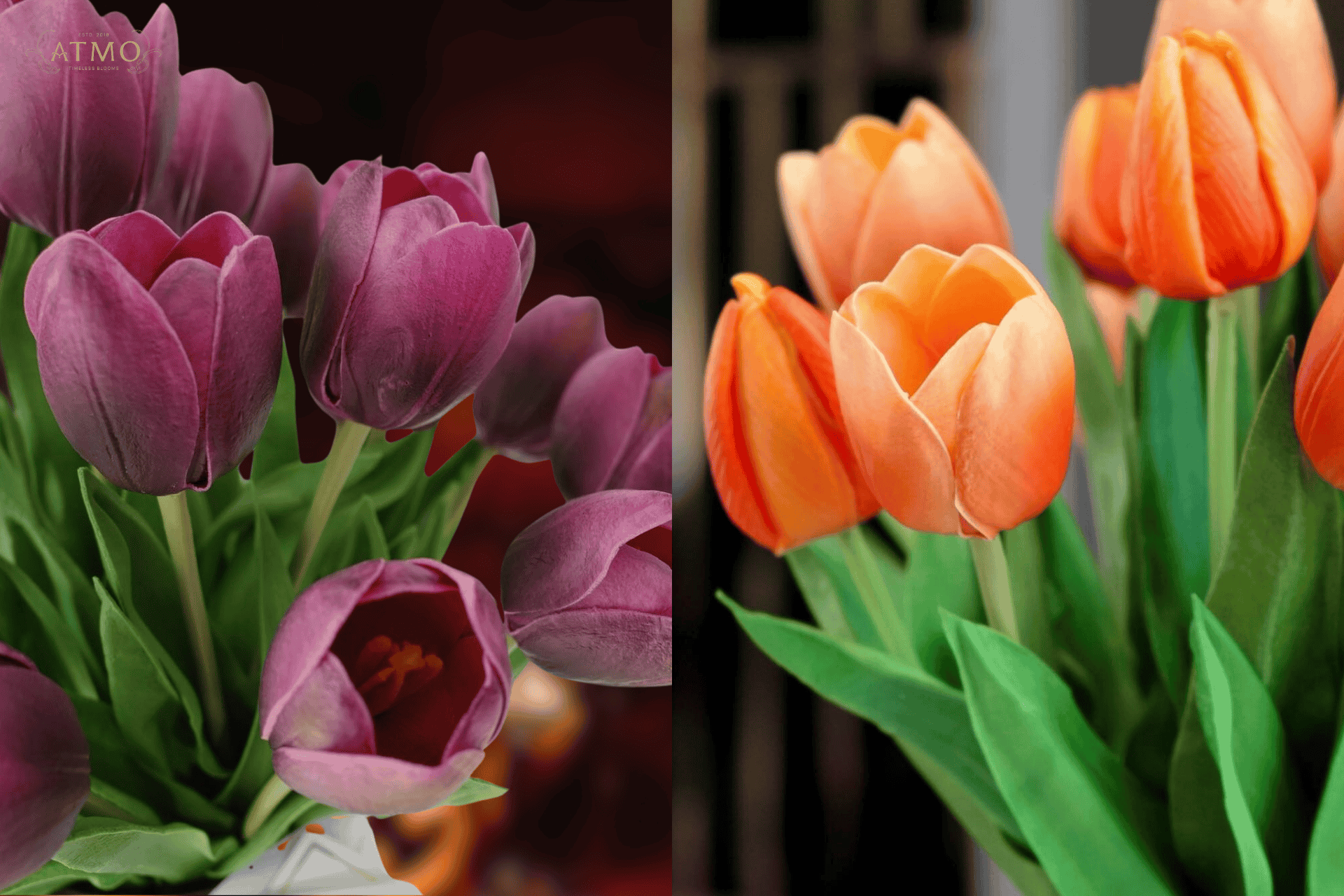แนะนำดอกไม้: ทิวลิปส้ม, กุหลาบส้ม, ดอกเดซี่ส้ม โทนสีนี้ให้ความรู้สึกมีชีวิตชีวา สดใส แต่ยังคงกลิ่นอายของฤดูใบไม้ร่วง เหมือนเปลวเทียนที่ส่องแสงอุ่นท่ามกลางความมืด