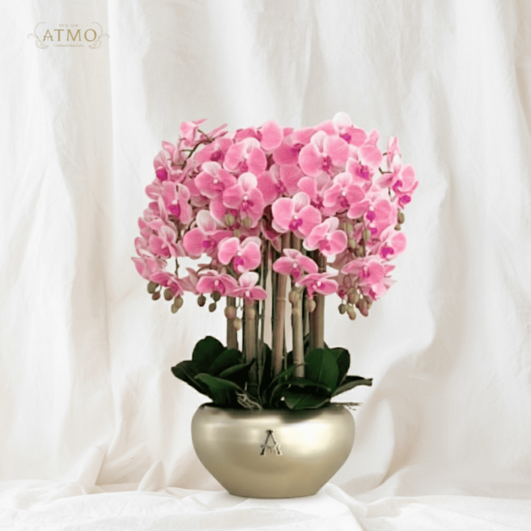 ผลต่ออารมณ์: การใช้สีทองในปริมาณที่พอเหมาะ (เช่น ที่ตัวแจกัน หรือขอบริบบิ้น) จะช่วยยกระดับความรู้สึกให้รู้สึกดีและมั่นใจ แต่ไม่กระตุ้นจนเกินไป เป็นการสร้างสมดุลระหว่างความสงบและความหรูหรา
