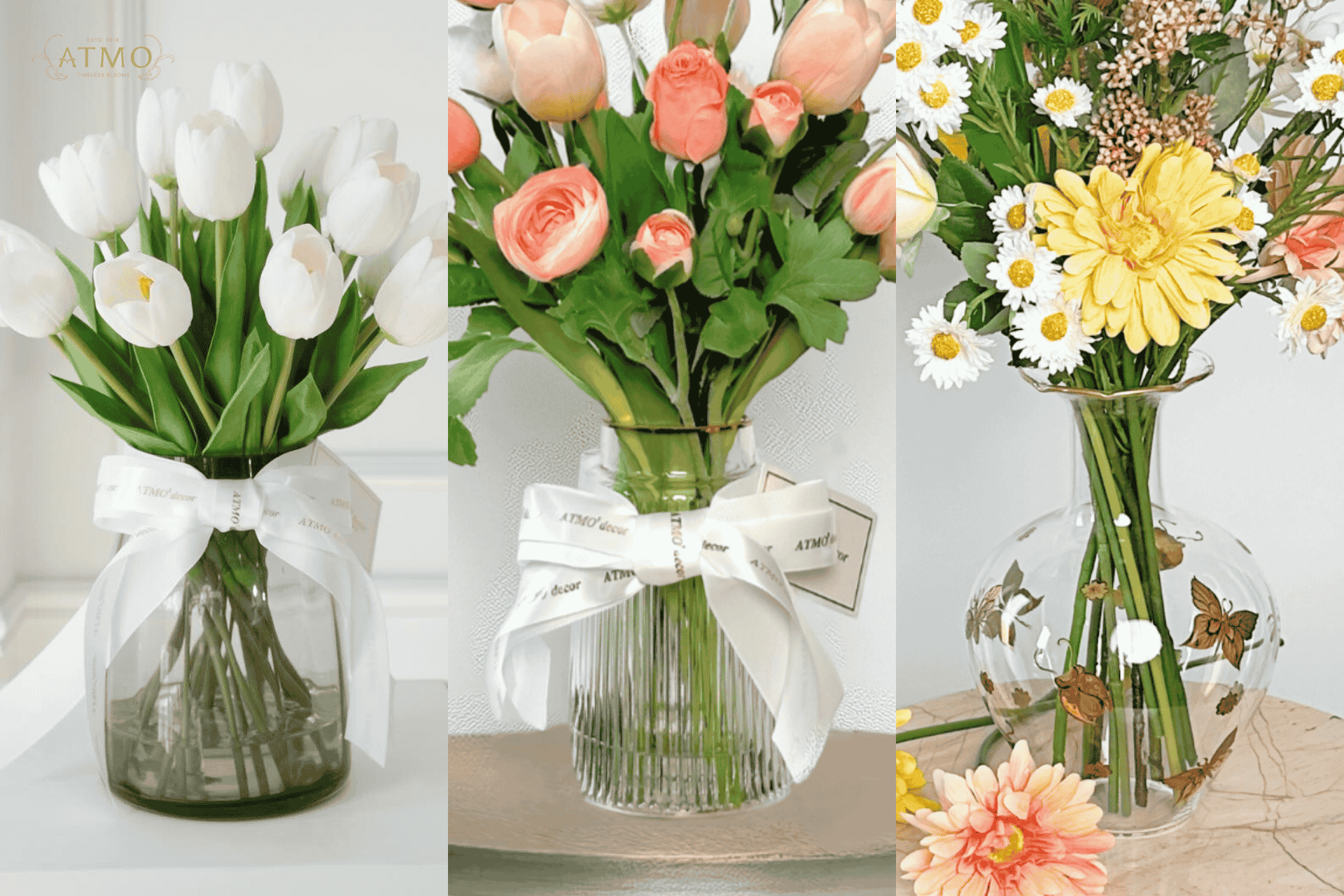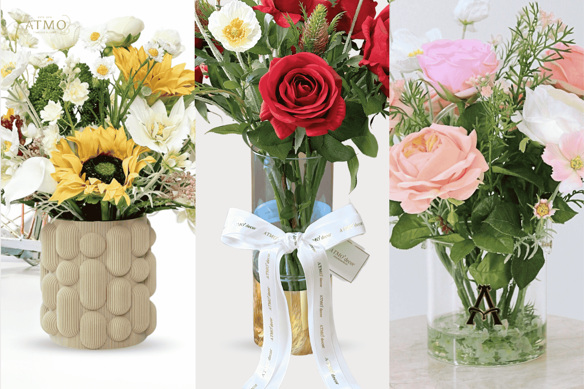 การเลือกรูปทรงแจกันที่เหมาะสม คือ หนึ่งในขั้นตอนสำคัญสำหรับการจัดบ้านสไตล์แบบ Timeless Bloom การจัดดอกไม้ประดิษฐ์จาก Atmo Decor ไม่ได้เป็นเพียงของประดับตกแต่ง แต่คือการแสดงออกถึงสไตล์ส่วนตัวที่สะท้อนตัวตนของคุณได้อย่างสมบูรณ์แบบ