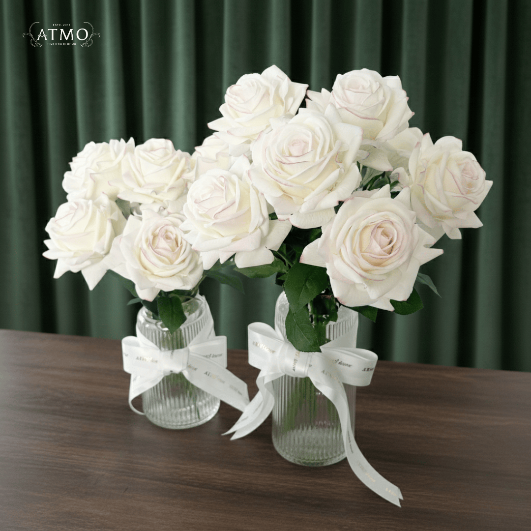 ในการตกแต่งสไตล์ Luxury ความลึก (Depth) และเลเยอร์ (Layer) คือหัวใจสำคัญ แจกันดอกไม้จึงไม่จำเป็นต้องอยู่โดดเดี่ยว การจัดกลุ่มแจกันสองใบไล่ระดับความสูงเป็นเทคนิคที่ง่ายที่สุดในการสร้างมิติที่ดึงดูดสายตาและทำให้ดอกไม้ประดิษฐ์จาก Atmo Decor ดูมีเรื่องราวมากขึ้น บทความนี้จะแนะนำวิธีจับคู่แจกันต่างไซส์ เลือกดอกไม้ต่างสีอย่างไรให้เสริมกัน เพื่อให้คุณยกระดับการตกแต่งบ้านให้ดูแพงและโปรแบบ Interior Designer มาทำให้เองกับมือ