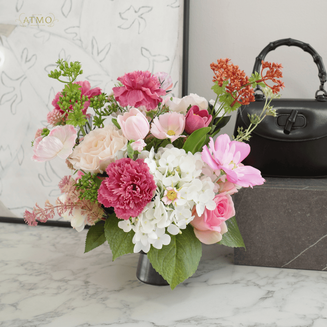ดีไซน์ที่หลากหลายตามคาแรคเตอร์: Atmo Decor มีแจกันดอกไม้ประดิษฐ์หลายสไตล์ ตั้งแต่แจกันทรงแก้วไวน์ที่ดูเพรียวบางทันสมัย ไปจนถึงแจกันทรง Majestic ที่ดูหรูหราโอ่อ่า ทุกใบจะมาพร้อมโบ Signature ที่ผูกอย่างประณีต ช่วยขับให้ดอกไม้ดูมีมิติและโดนเด่น